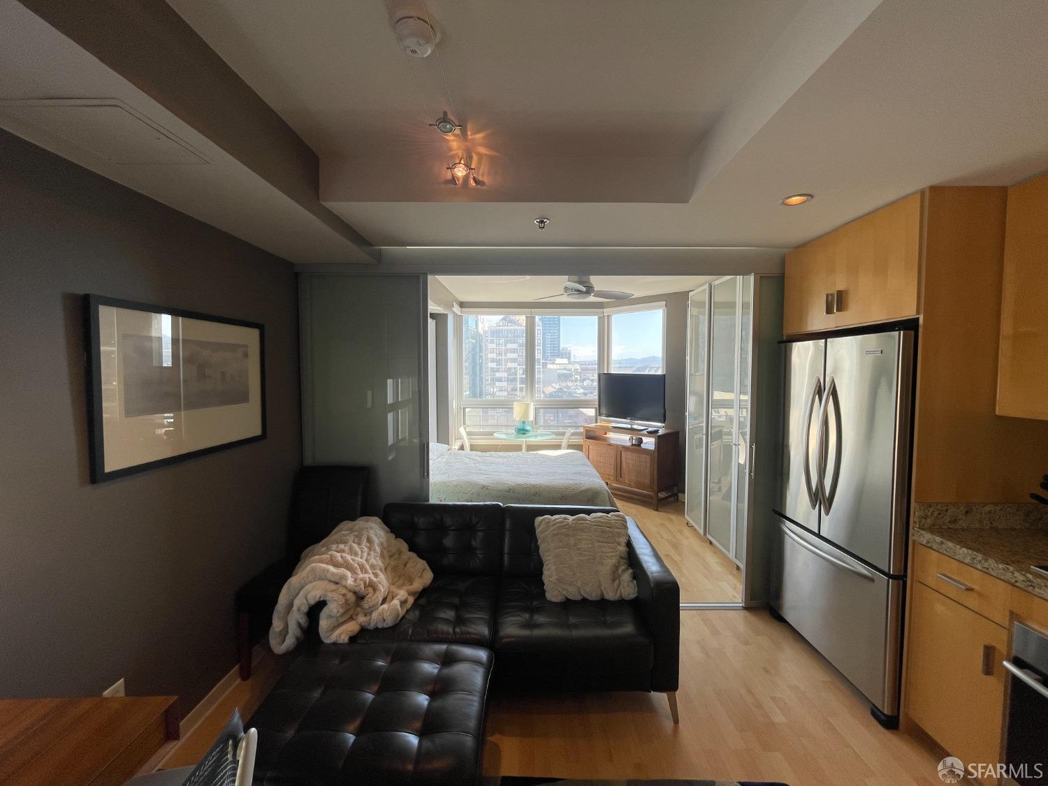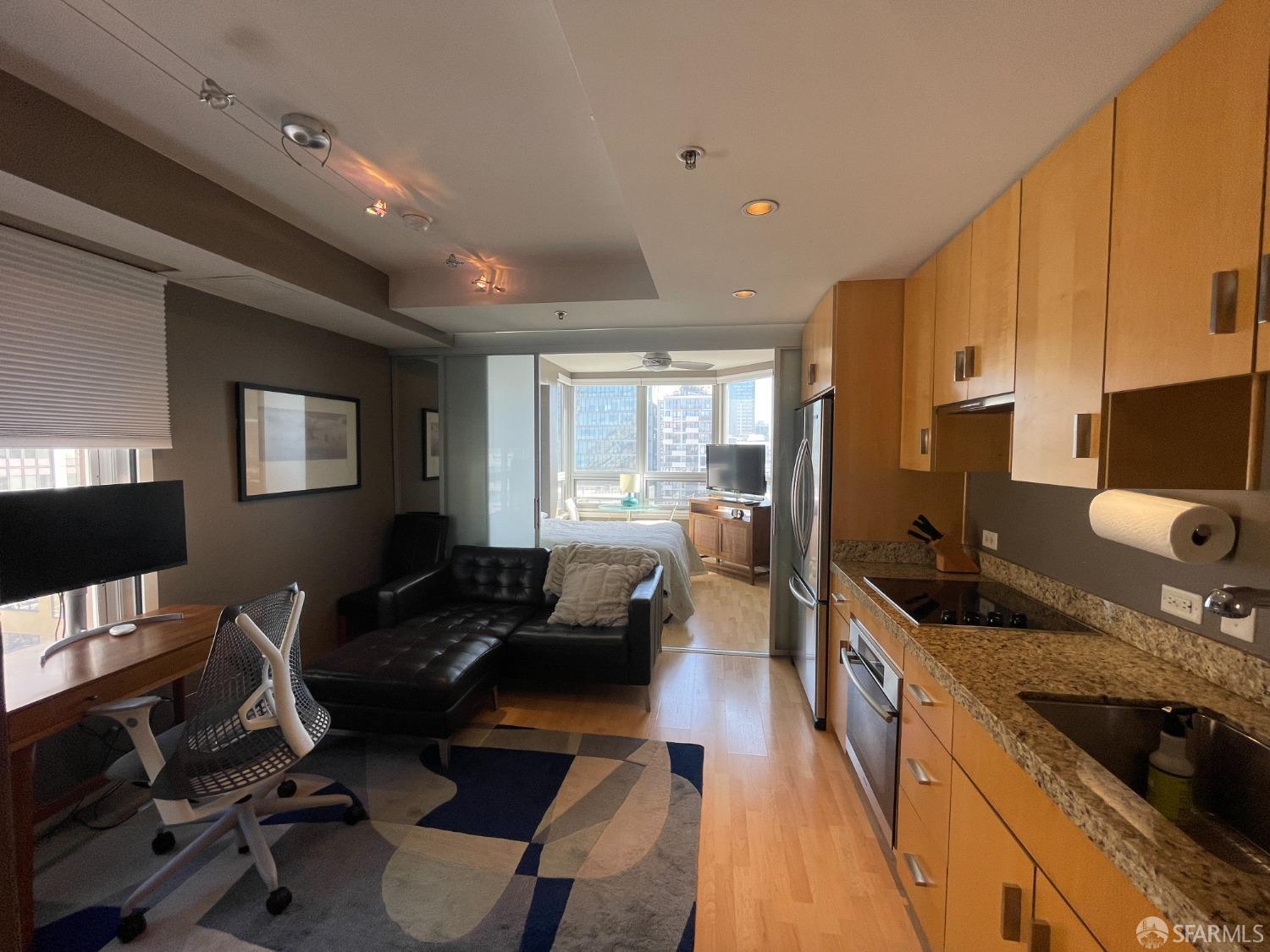 At the intersection of Civic Center and Hayes Valley this studio in Symphony Towers, an elevator building, has it all for City living. Unit comes with a Murphy bed, and potentially fully furnished, with ample amount of closets and storage. Wood floor covering, great natural light, high end kitchen appliances and in-unit washer/dryer. City views, 1 car parking and additional storage unit in the building, not to mention a 99 WalkScore close to cultural institutions such as the ballet, jazz, opera and symphony as well as various museums, blocks to the new California Pacific Hospital and an assortment of restaurants and bars.