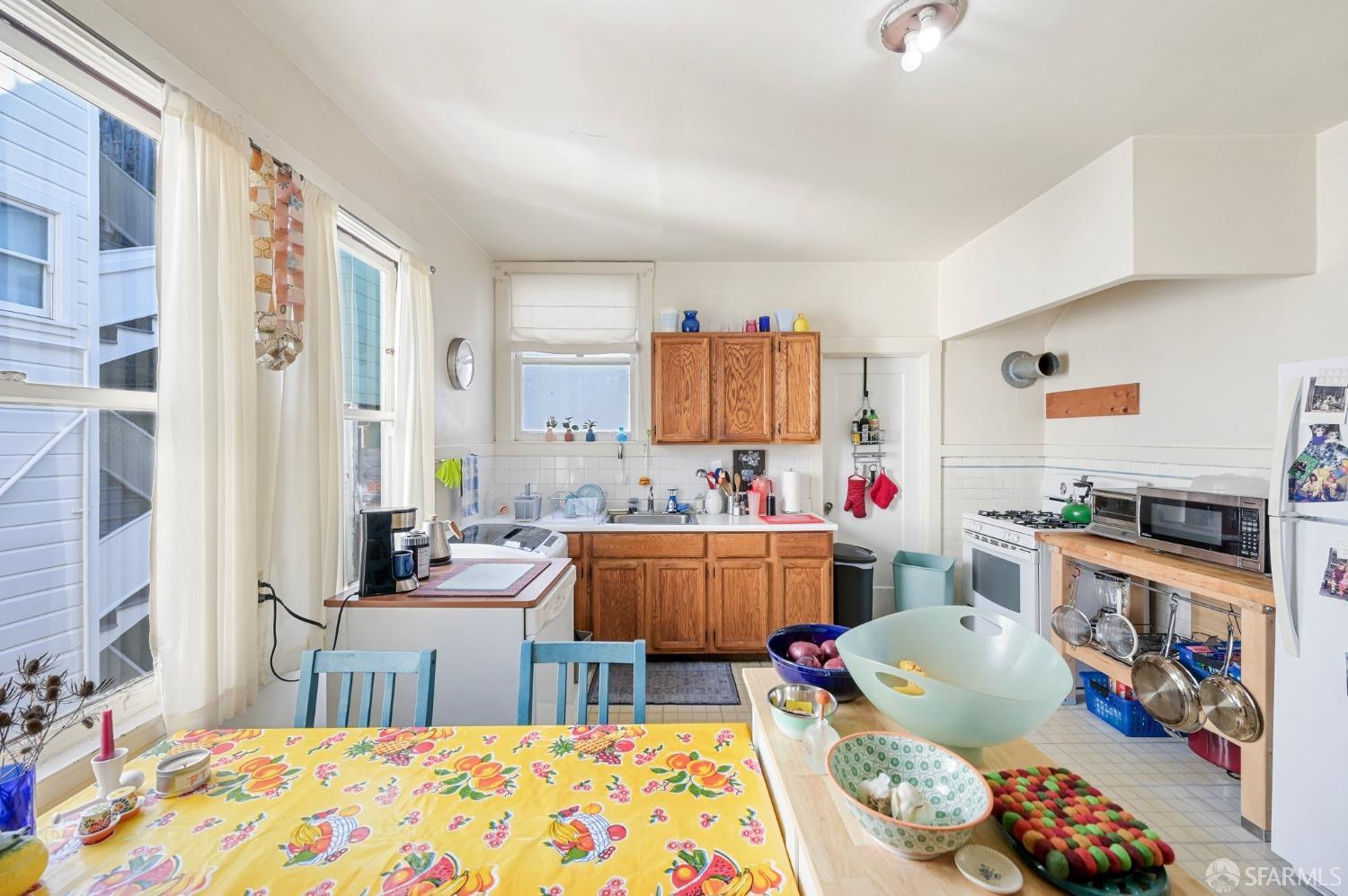 Opportunity awaits at this well maintained Russian Hill duplex with VACANT top unit, just blocks from North Beach, Chinatown and Financial District. Great natural light, hardwood floors, architectural charm, and generous sized rooms. Each unit has 2 bedrooms, 1 bath, and a formal dining room that can be used as a third bedroom. Additionally, units have a living room with fireplace, large eat-in kitchen, enclosed back porch for additional storage or potential laundry room. The upstairs unit (941) is remodeled and VACANT. The downstairs unit (939) is tenant occupied. A spacious, vacant garage with plenty of height accommodates 2 cars and includes a large storage room. 3 additional areas in the basement offer expansion potential and value-add opportunity. Conveniently located near restaurants, shopping, parks, and North Beach Library. Public Transportation: 8, 30, 39, 45, 91, Cable Cars, Chinatown MUNI Metro Station connects to Powell BART Station. Easy access to freeways 80/101. www.GreenwichDuplex.com